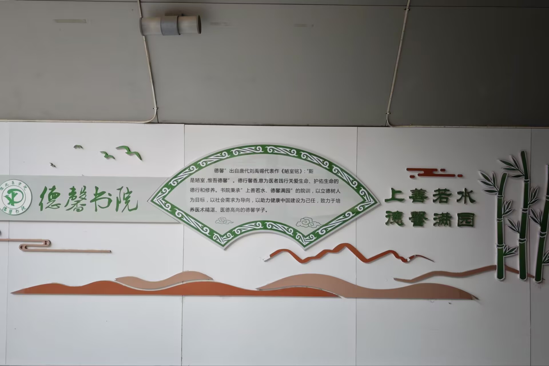 “德馨”二字取自唐代刘禹锡代表作《陋室铭》:“斯是陋室,惟吾德馨”。德行馨香,意为医者践行关爱生命、护佑生命的德行和修养。书院秉承“上善若水、德馨满园”的院训,聚焦“敬佑生命、救死扶伤、甘于奉献、大爱无疆”的生命文化精神,构建了“三位一体”生命文化育人体系,致力于将学生培养成为医术精湛,医德高尚的德艺双馨人才。