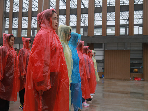 当雨下得太大时,教官也会改变军训任务,或到教室给新生播放军旅题材纪录片或来到宿舍亲自示范教给新生整理内务。军训间隙也会有一些轻松的娱乐项目,拉歌和才艺表演等。学校在磨练学生意志的基础上,尽可能给新生爱护和关怀,除了雨衣外,学校为防止新生着凉感冒,在餐厅供给免费姜汤。