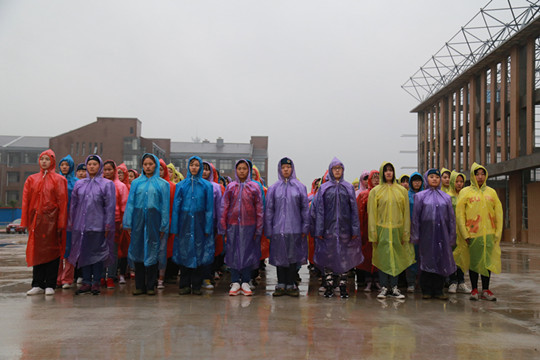 军训期间,雨不停地下着,大一新生们披着雨衣进行军训,整齐的步伐,响亮的口号成为校园里一道亮丽的风景线。“一二一,一二一”,随着教官的发号,新生们排成列踏步,有些雨坑里有积水,走正步直接踏下去,青春的脸庞挂满水珠。没有教官允许,新生们仿佛定格在那一步,没有一个人去擦拭脸上的水珠。徐教官称,军训的意义就是磨练学生的意志,也许有些同学把军训当作苦难或是煎熬,但随着逐渐的成长,他们将会发现这是一笔宝贵的财富。