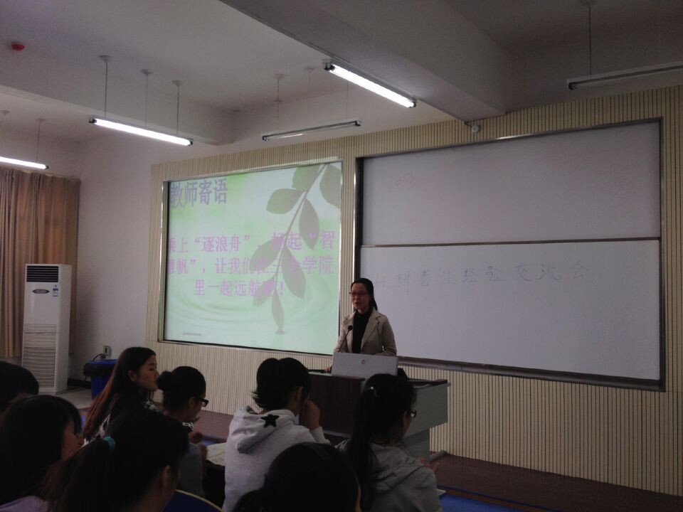 为了使我书院2014级新生更快明确大学的学习目标,掌握适合大学的学习方法,营造和谐向上的学习氛围,10月16日上午,德馨书院在第一教学楼B203教室开展了主题为“启迪现在,展望未来”的学习经验交流会。14级新生辅导员侯力滋,13级王世顺、吴秀婷等6名学生以及14级全体护理新生参加了此次交流会。