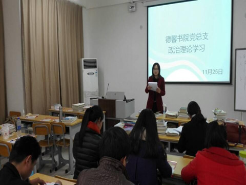 11月25日下午,德馨书院全体党员在第一教学楼C204召开了党员政治理论学习会议。书院全体党员参加此次会议。党总支书记金靖芝主持会议。此次政治理论学习主要围绕解读十八届四中全会公报展开。
