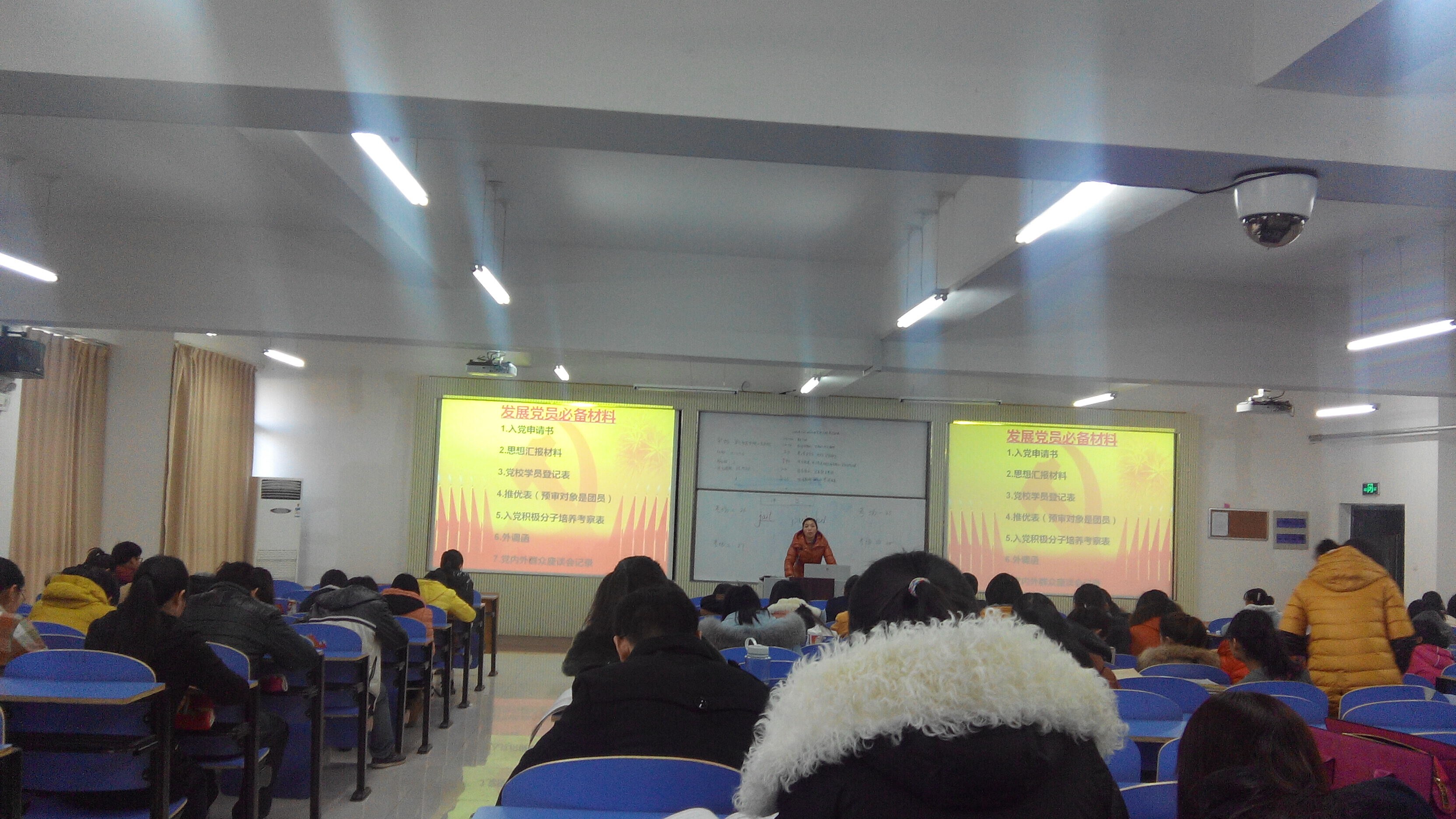 30日中午,德馨书院党总支在B102教室对2013级医学检验技术百余名同学进行了入党基本知识培训,本次会议由德馨书院杨翠苹老师主讲。