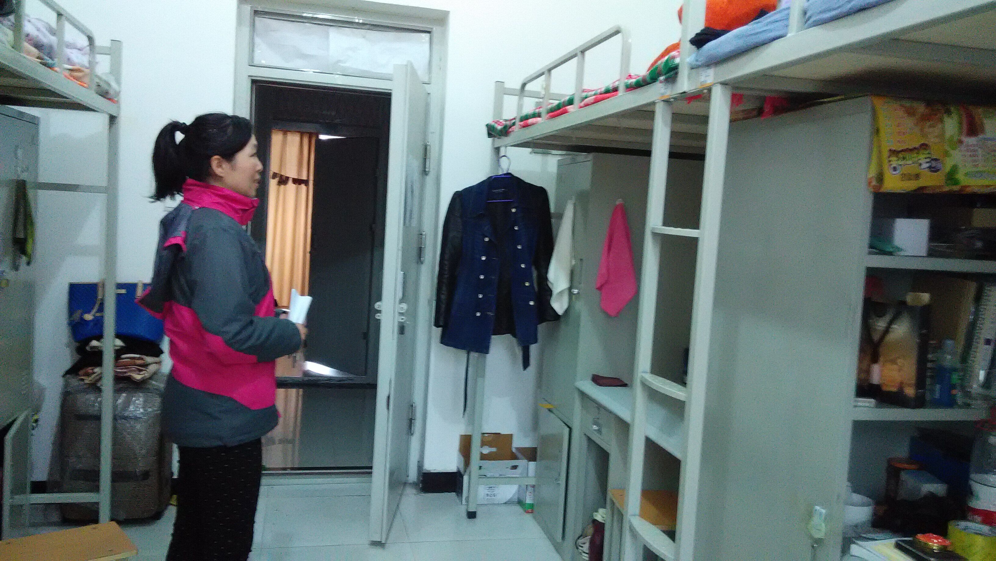 紧接着,杨老师对学生宿舍进行了安全排查,查看宿舍门锁及电源情况,特别关注宿舍的安全隐患问题,发现一些宿舍有接线板放置凌乱、电源插座不拔以及物品摆放不整齐等现象。针对此类现象,杨老师强调了用电安全常识,并对隐患问题和卫生问题进行了纠正指导,同学们对杨老师发现的问题及时进行了处理。