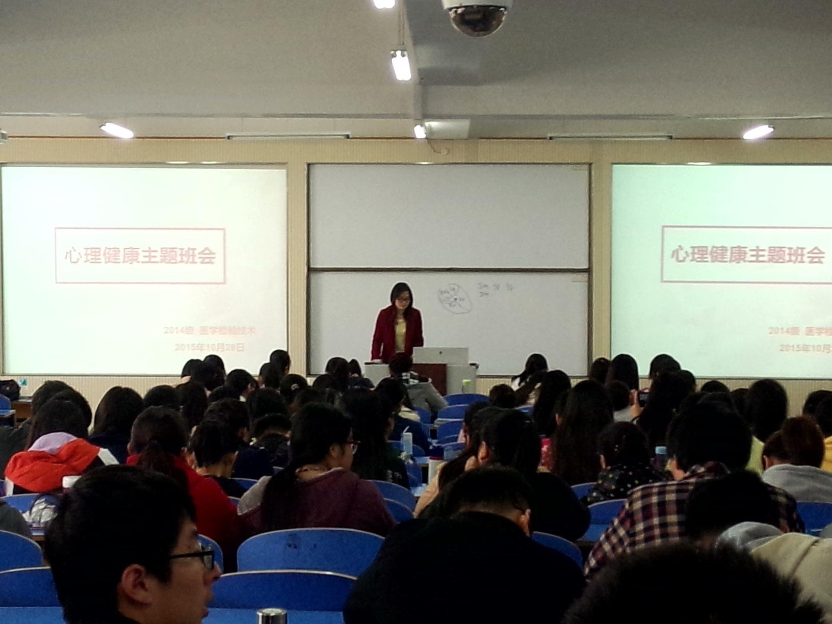 10月28日上午,以“心理健康教育”为主题的班会在第一教学楼B302顺利举行。德馨书院辅导员侯永爽主持本次班会,14级本科检验全体学生参加。
