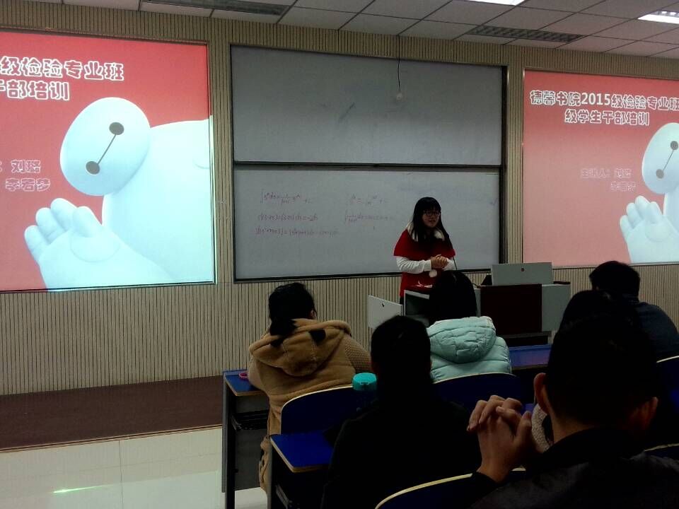 11月11日,我院2015级检验专业在平原新区第一教学楼A301教室进行了班级学生干部技能培训,以期进一步提高班级学生干部的政治素养,同时提高其电脑、摄影等基本操作技术。本次培训由辅导员刘璐老师主讲,全体班级学生干部参加。