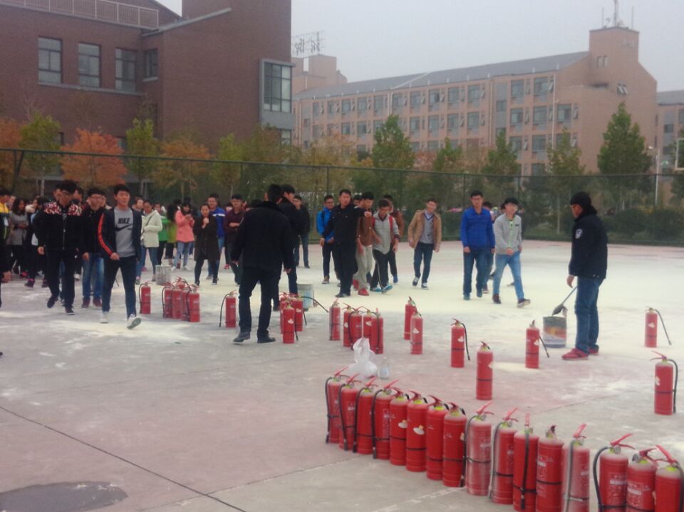 演练开始前,杜科长详细的向学生们阐述了防灾减灾的安全知识,讲解如何使用灭火器及使用灭火器时的注意事项,为了让同学们更好的掌握灭火器的使用方法,保卫科准备了二十余个干粉灭火器供大家练习,并邀请老师亲自使用灭火器和同学们一起进行灭火演练。同学们在老师的指导下分成小组有序的体验了如何使用灭火器。在寒风中,老师和同学们仍然热情不减。