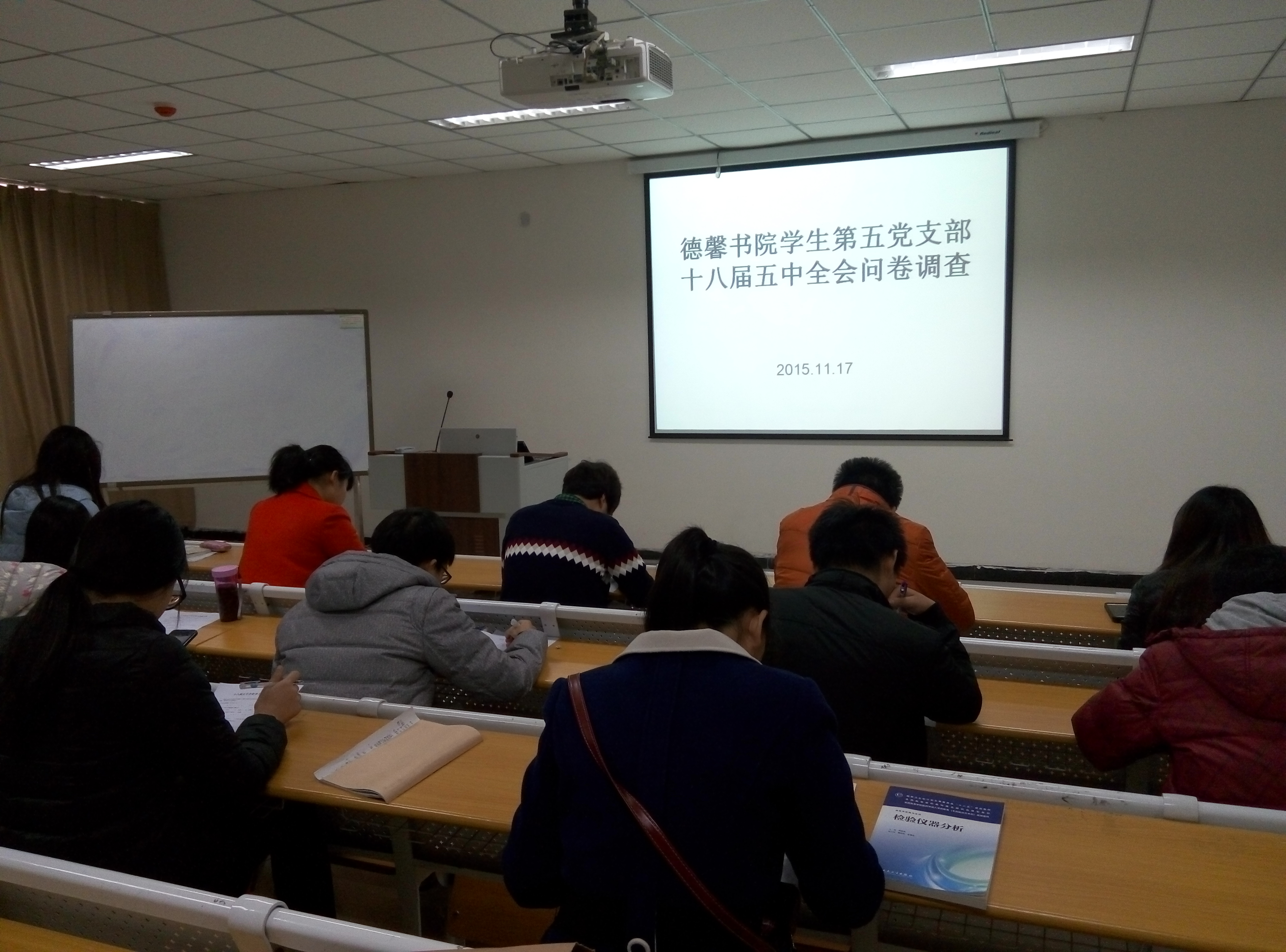 中国共产党第十八届五中全会已胜利召开,为提高学生党员们的政治敏感度,及时学习党中央最新政治精神,德馨书院学生第五党支部于11月17日在第一教学楼C103召开了政治理论学习会议,会议由党支部书记侯力滋主持,第五党支部全体党员、预备党员、积极分子参加会议。