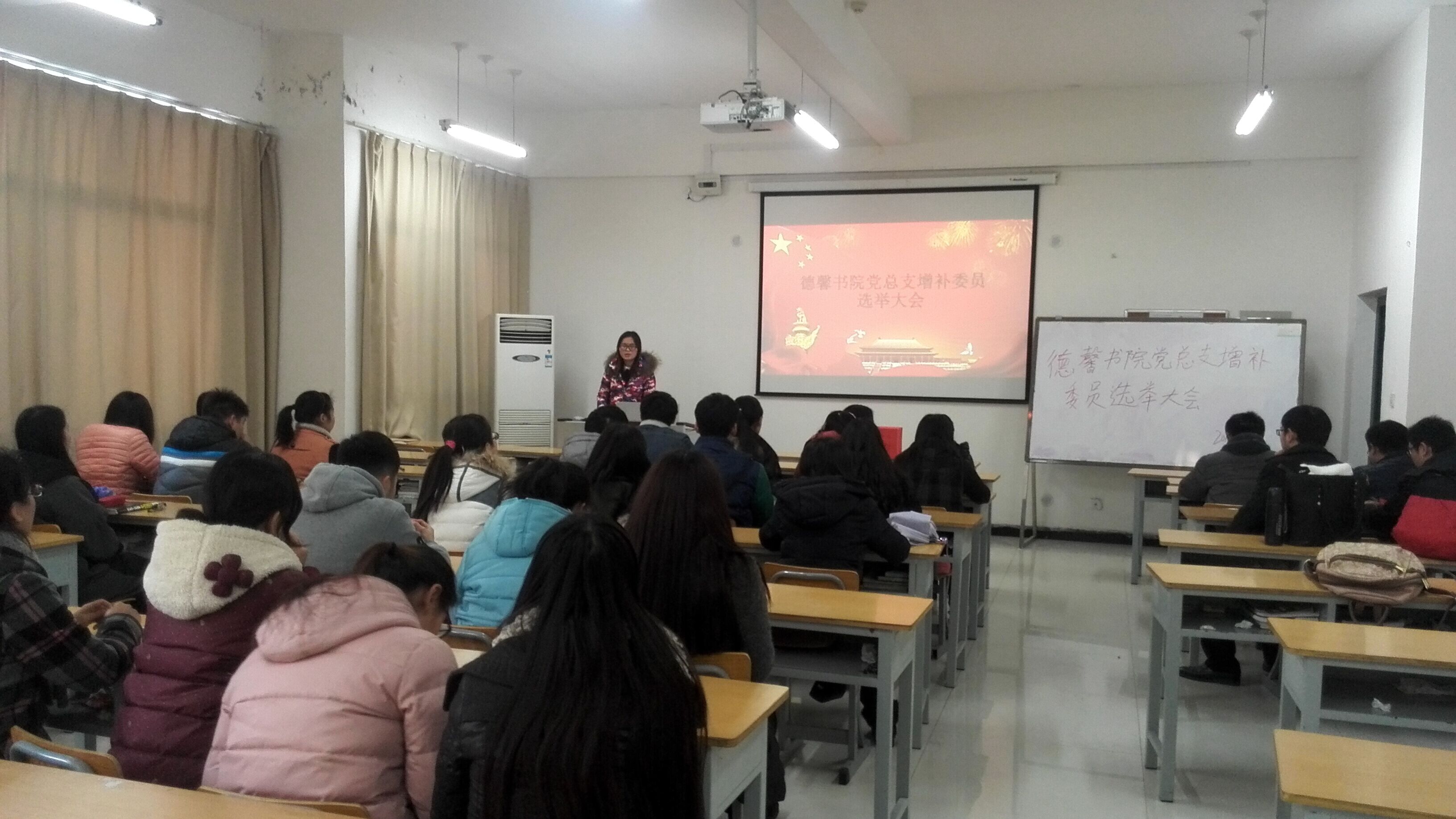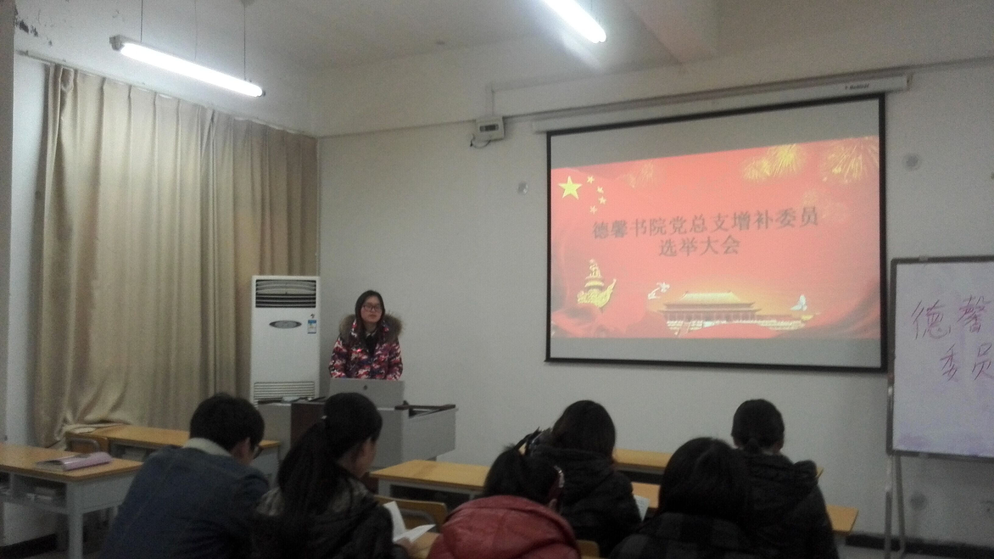 11月25日,德馨书院党总支增补委员选举大会在第一教学楼B205教室召开,此次会议在德馨书院党总支书记金靖芝的带领下进行,德馨书院全体教师党员和学生正式党员、预备党员参加此次会议。