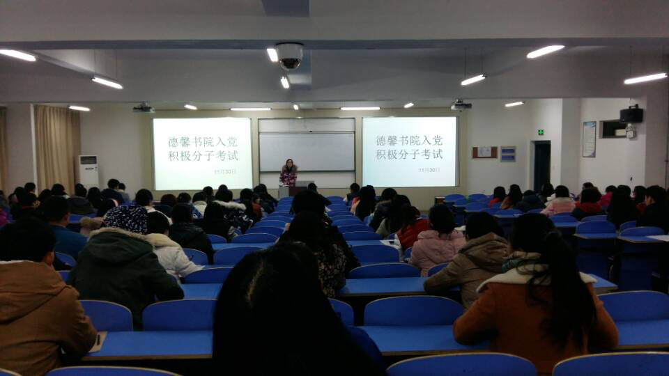 为考察入党积极分子的近期的思想状况,以及入党动机和政治理论素质,德馨书院党总支于2015年11月30日下午5:30在平原新区教学楼B303进行入党积极分子考试,德馨书院书院全体入党积极分子参加考试。本次考试由德馨书院党务专干侯永爽老师负责组织。