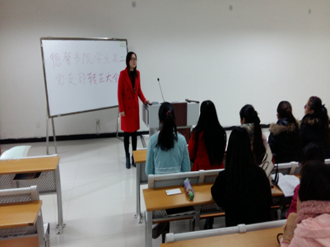 12月24日,德馨书院学生第二党支部预备党员转正大会在第一教学楼c202教室召开,大会严格按照预备党员转正的有规定流程进行,讨论金蒙,崔欣等6位同志的转正问题。此次会议由德馨书院学生第二党支部书记侯永爽老师主持,各学生支部全体正式党员和预备党员同志参加此次会议。