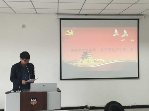 5月9日,德馨书院第二党支部于第一教学楼C202教室召开党员发展大会。党支部书记杜佳主持会议,第二学生党支部全体学生党员、预备党员参加。
