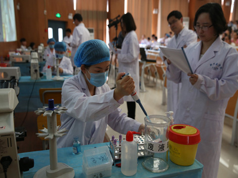 5月6日晚,第四届“艾迪康杯”医学检验专业技能大赛在第一教学楼D2教室举行。比赛特邀艾迪康检验中心病理实验室经理张湘教授、临床实验室经理杨超教授、新乡医学第三附属医院检验科康丽霞教授、新乡雅仕杰医学检验所区域经理安禹炜、检验与影像学院李平法教授担任评委。艾迪康郑州分公司人力资源部主管禹凡、我院党委书记王志凯、市场总监杨文亮教授、教务长杜华贞出席,500余名师生共同参与了此次比赛。