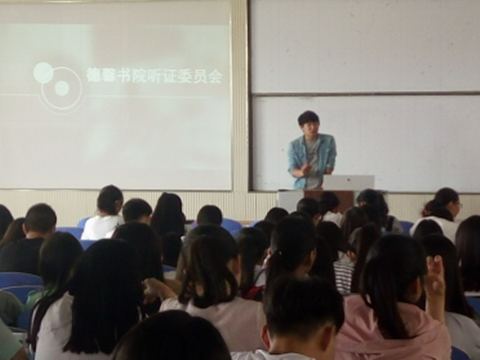 为促进学校民主化管理,充分调动学生对校园建设出谋划策的积极性。5月17日,德馨书院在b401教室召开听政委员会。大会由学生会指导老师杜佳主持,各班同学代表及班委代表参加本次大会。