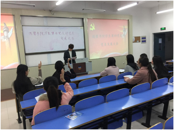 德馨书院第四党支部于11月9日在第一教学楼B201教室召开党员发展大会。该会议由德馨书院第四党支部书记侯力滋老师主持,德馨书院2名正式党员,3名预备党员参加此次大会。
