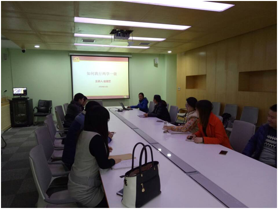 为了深入开展“两学一做”学习教育,11月22日下午,在行政楼第四会议室德馨书院党总支书记金靖芝同志为德馨书院全体党员职工上了一堂“两学一做”专题党课。
