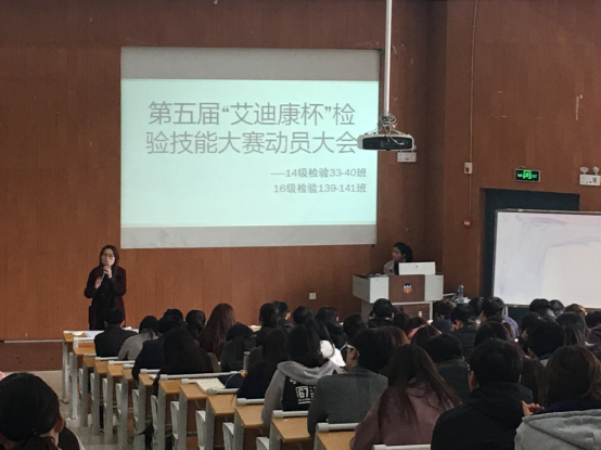 3月21日下午,2014级医学检验技术大班学生与2016级专升本医学检验技术专业学生于D2大教室进行了检验技能大赛的动员大会。在检验影像学院胡淼院长与辅导员侯永爽老师参加了此次大会。