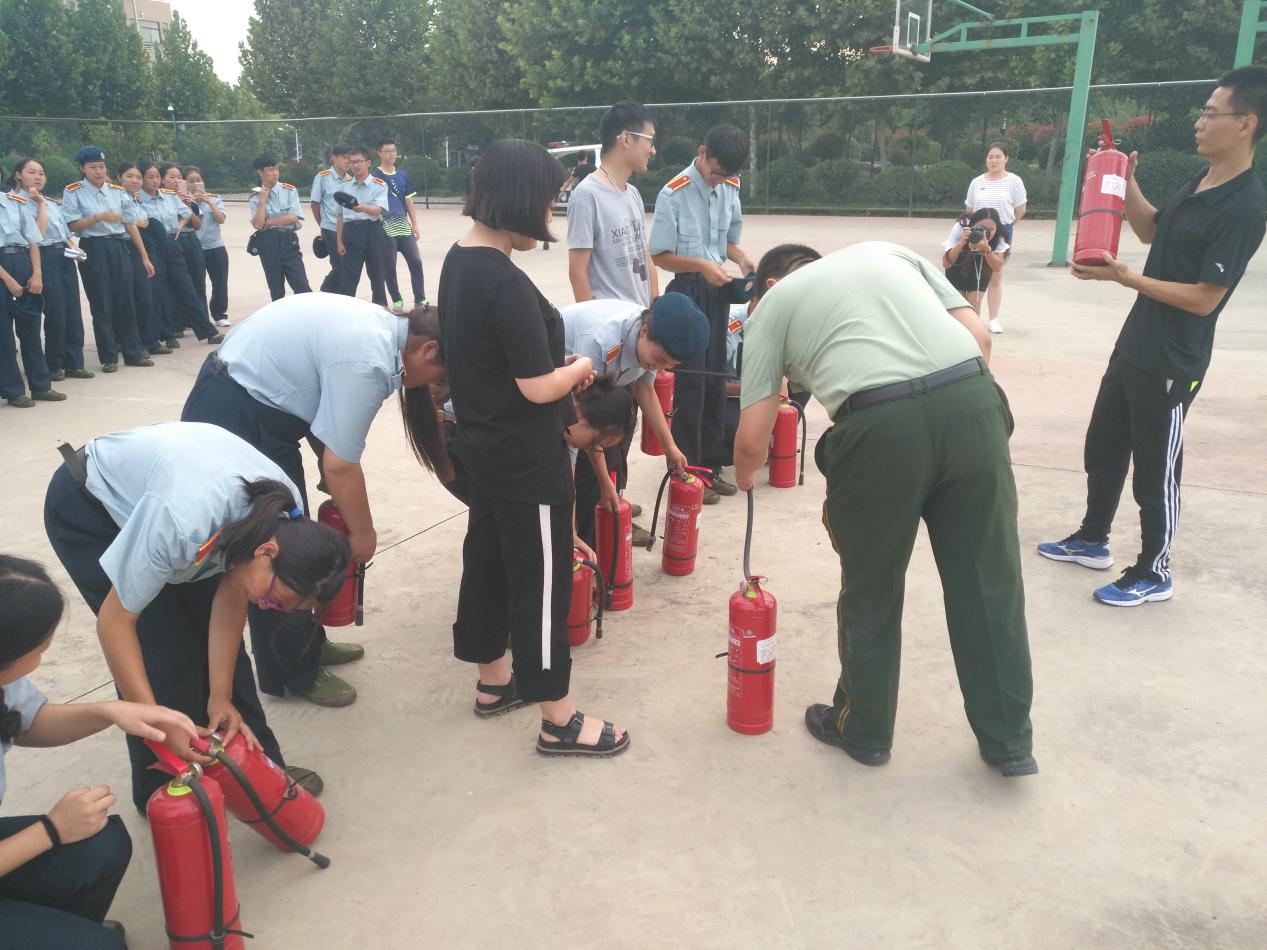 活动伊始,由当地消防部门工作人员拉响火灾警报,新生们用湿毛巾捂住口鼻,有秩序的弯腰下楼梯,跑出宿舍后,逃离至空旷地带。随后,消防人员开始对新生讲解如何逃生自救、如何正确报警等消防知识,用火、用电等注意事项。接着,工作人员通过现场灭火演示向同学们讲解消防器材的基本知识和灭火器使用方法,使同学们了解消防器材,懂得怎样利用灭火器扑救初起火灾。最后,在消防人员的陪同下,新生们争相进行体验,对防火、灭火有了更深的了解。