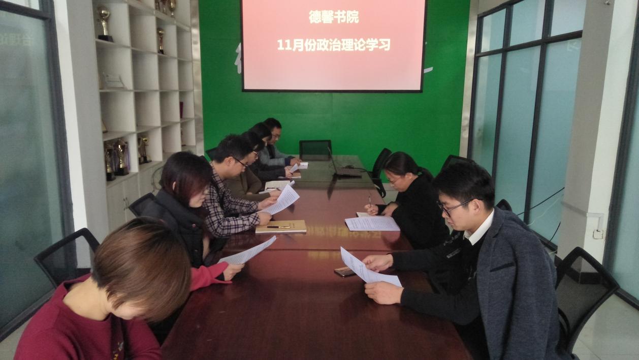 2017年11月17日下午3点,德馨书院全体教职工党员在辅导员办公室进行了十一月份的政治理论学习会议,此次学习的主题是不忘初心、牢记使命、永远奋斗。