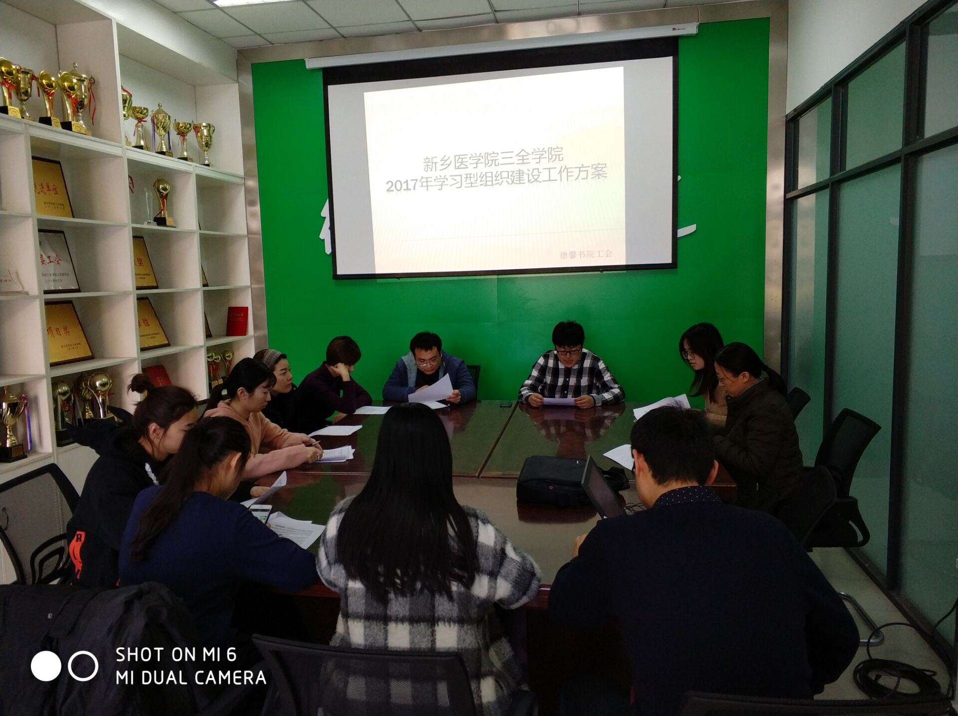 为认真学习和研究《新乡医学院三全学院学习型组织、学习之星评选奖励办法》、《新乡医学院三全学院2017年学习型组织建设工作方案》的文件内容和精神,新乡医学院三全学院德馨书院于2017年12月1日开展了学习型组织建设工作学习讨论会。