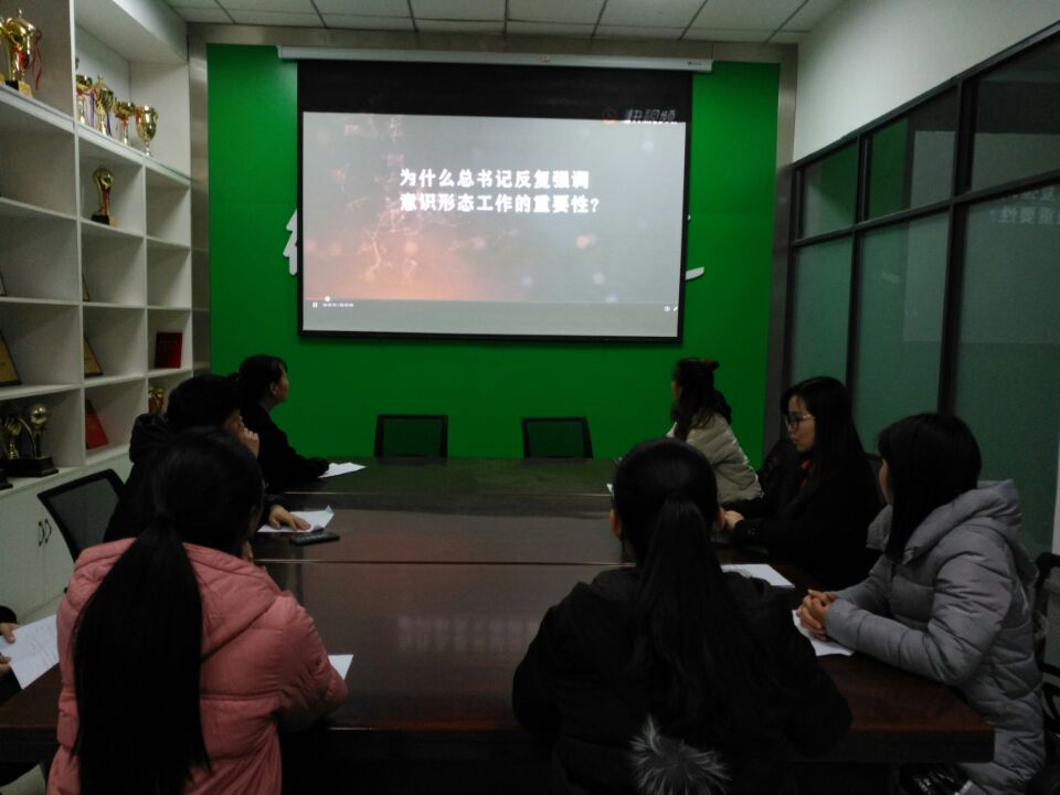 会议主要学习关注了习近平总书记在党的十九大会议中重点提出的关键词“意识形态”,认真领会“意识形态”在党内工作和个领域的重要性。全面加强党的意识形态建设工作,牢牢掌握意识形态工作的领导权和主动权,使我国社会主义意识形态建设取得了巨大成就,意识形态领域某些方面曾经存在的被动局面得到根本扭转。科学把握近年来我国意识形态建设工作的主要特点,对于进一步加强党的意识形态工作有着十分重要的实践意义。