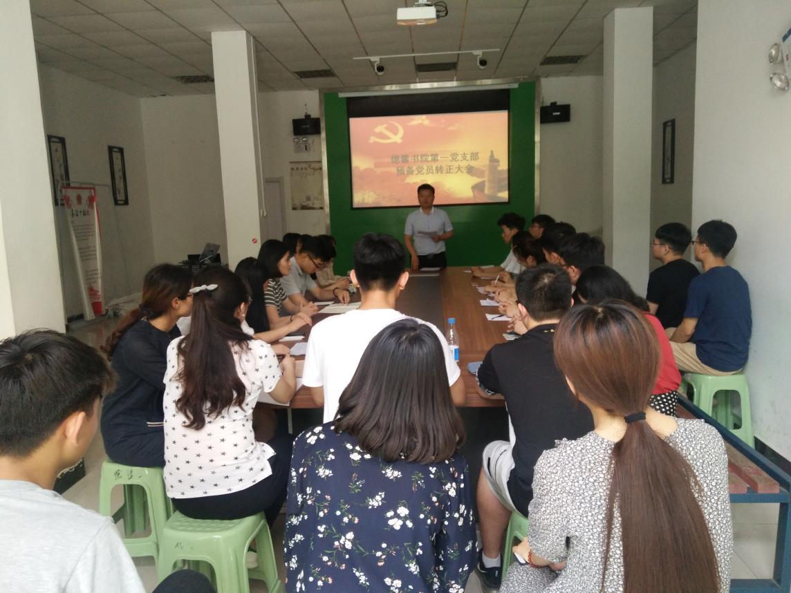 德馨书院学生第一党支部预备党员转正大会严格按照发展党员的有关规定流程进行并取得圆满结束。