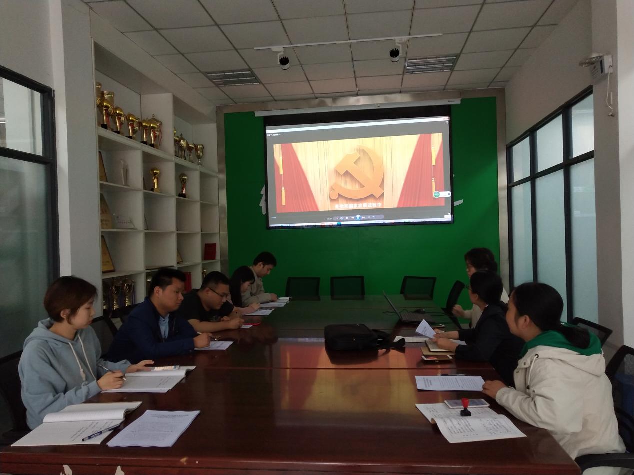 活动开始时,全体党支部职工观看了电影《厉害了,我的国》和新闻联播视频。从中了解到这部影片是将党的十八大以来中国的发展和成就,以及党的十九大报告中习近平总书记提出的中国特色社会主义进入新时代这一重大论述,以纪录片的形式首次呈现在大银幕上,影片中,不仅记录了中国桥、中国路、中国车、中国港、中国网,一个个非凡的超级工程,还展示了人类历史上最大的射电望远镜FAST、全球最大的海上钻井平台“蓝鲸2号”、磁悬浮列车研发、5G技术等引领人们走向新时代的里程碑般的科研成果。从圆梦工程到创新科技、从绿色中国到共享小康,电影分享震撼的影像的同时,也将其背后的故事娓娓道来;在彰显国家实力的同时,也体现了国人们不畏艰险、埋头苦干、开拓进取的美好情操,创造出一个美好的新时代。