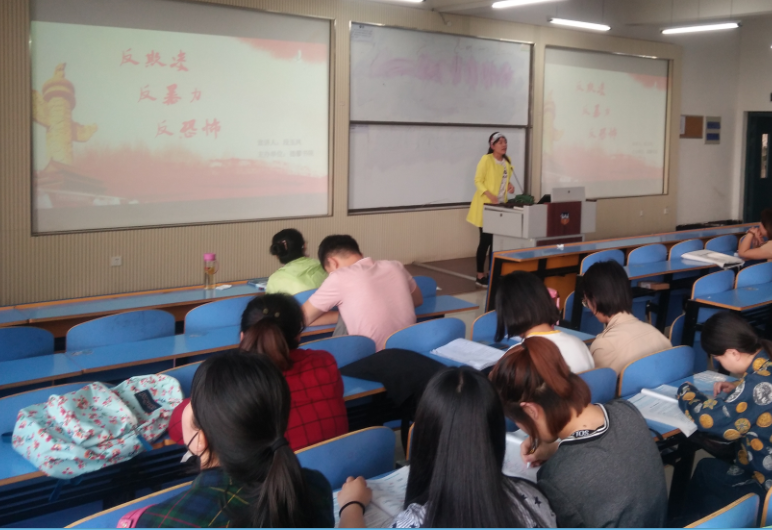 活动第一环节,由主持人致开场白,宣布活动开始,并简单介绍段玉凤老师与开展此次活动的目的。活动第二环节,段玉凤老师进行“反欺凌 反暴力 反恐怖”的主题讲授。段玉凤老师以案说法,结合典型案例与视频,以通俗易懂的语言讲授了校园欺凌的危害及法律后果,进一步警示同学们反对校园欺凌,远离违法犯罪,还校园一片净土。活动圆满结束。