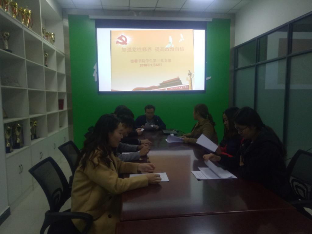 1月22日,德馨书院第三党支部在德馨书院会议室开展了一月份政治理论学习活动,会议由德馨书院党支部书记高明主持,第三党支部全体党员、预备党员参加会议。