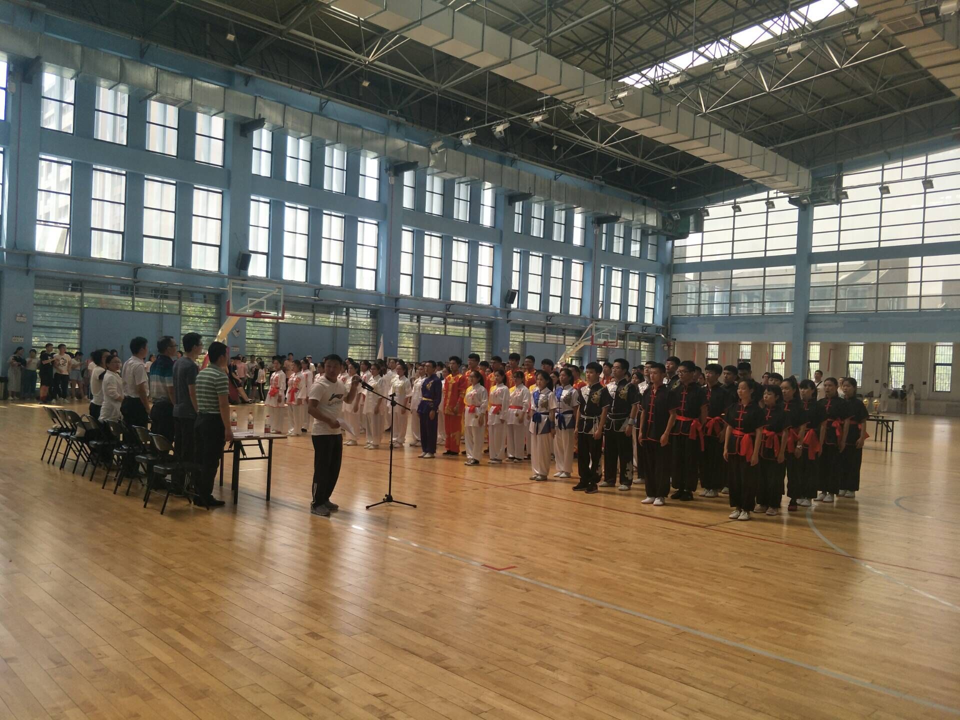 6月6日大学生第二届武术比赛在新乡医学院三全学院平原校区综合训练馆举行。本次活动由新乡医学院三全学院体育部主办,由体育部武术与体操教研室承办。参加此次活动的人员有五个书院的参赛选手,每个项目的比赛成绩由体育部老师与领导为其打分。