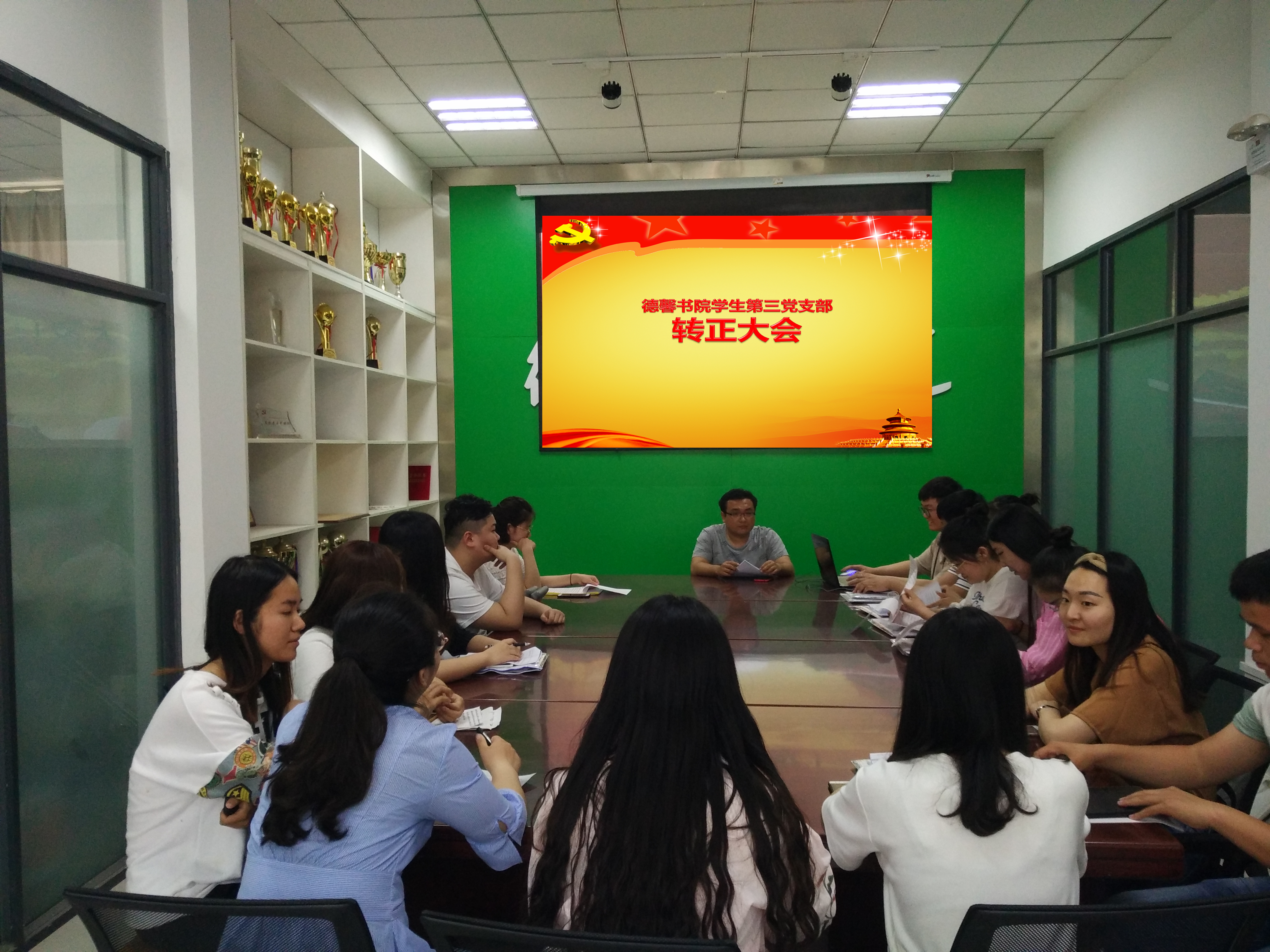 2018年5月9日,德馨书院学生第三党支部于德馨书院会议室召开预备党员转正会议,讨论关于赵红等7名同志申请转为正式党员的问题。出席本次大会的有党支部书记高明、以及11名支部同志。