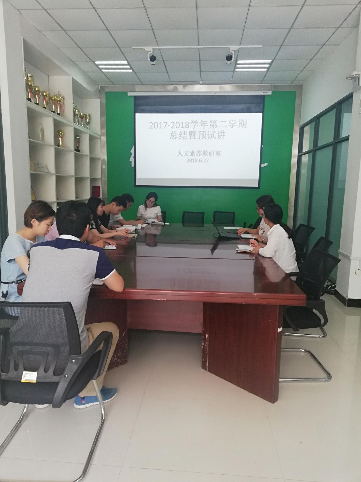 6月22日,德馨书院人文素养教研室全体教师在书院会议室召开了2017-2018学年第二学期总结暨预试讲会议,由教研室主任段玉凤主持。
