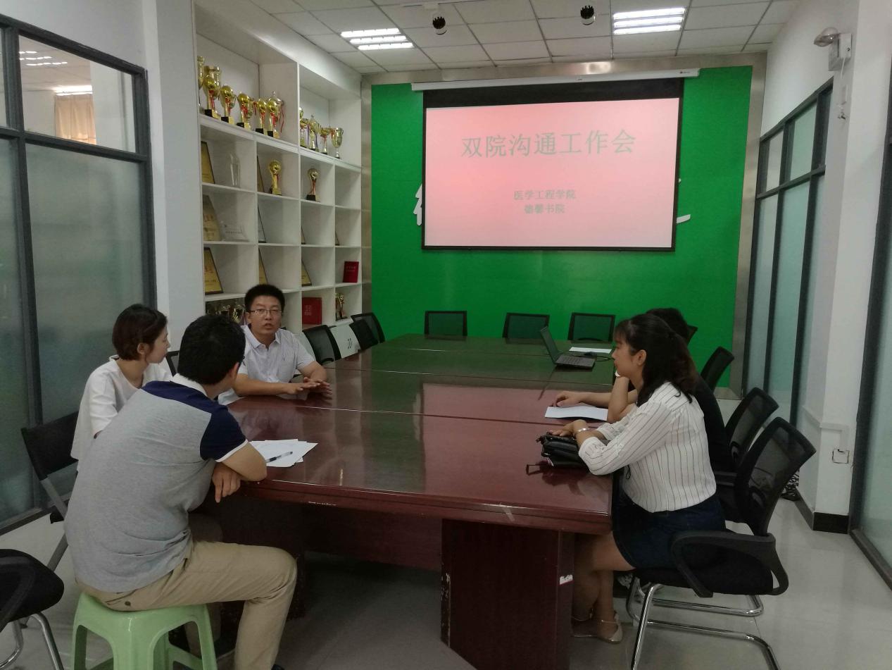 6月15号,德馨书院和医学工程学院双院制改革暨双院沟通交流会议在德馨书院办公室召开,医学工程学院党总支副书记陈继超,第一职工支部书记张改改,教师陈坤和德馨书院辅导员郭勇、张晗等参与了本次会议。