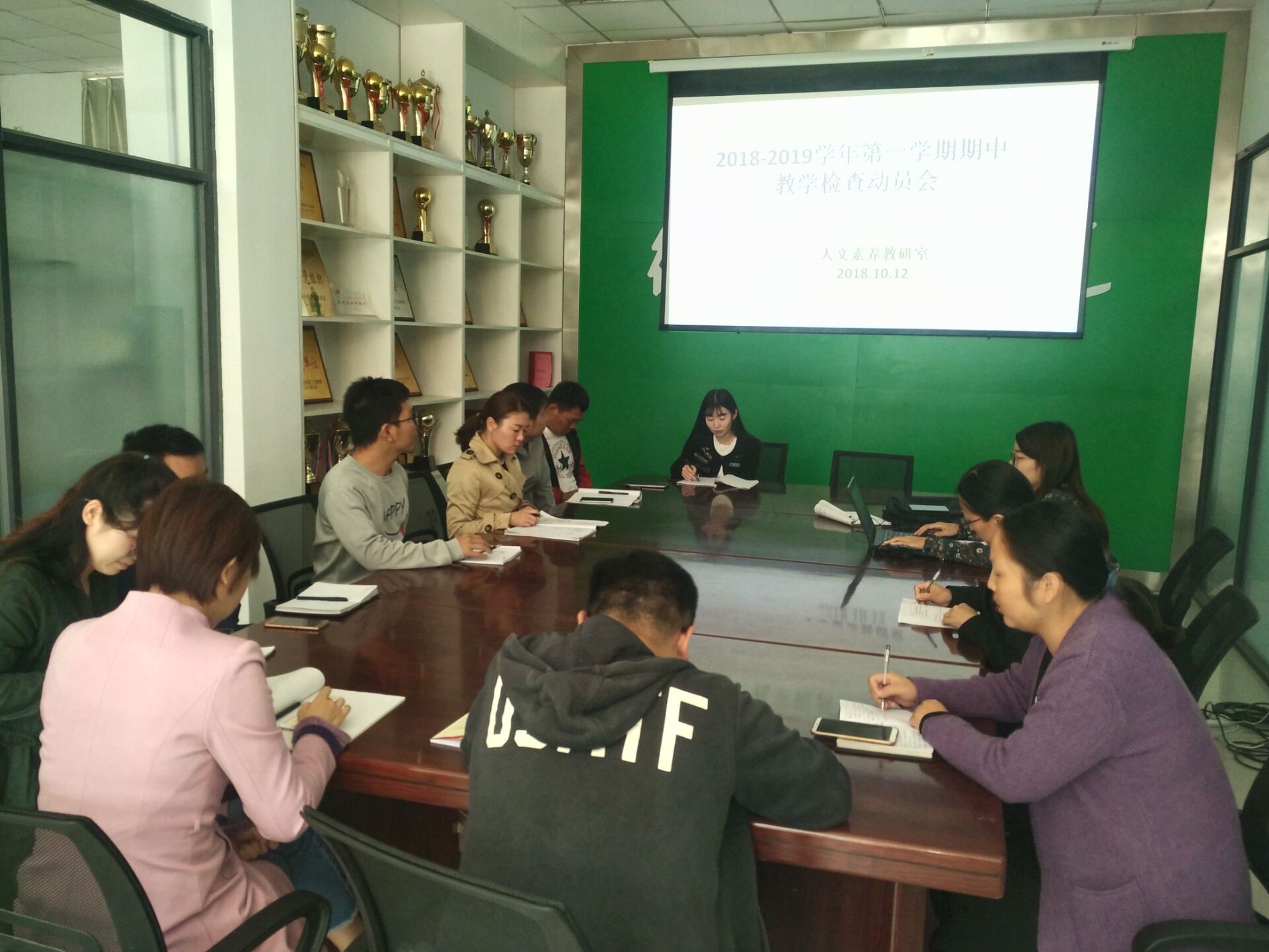 会上,段老师就本次期中教学检查的意义及重要性,以及容易出现的问题进行了讲解说明,强调老师们一定要重视,同时,就需要提供的相关材料进行了说明。