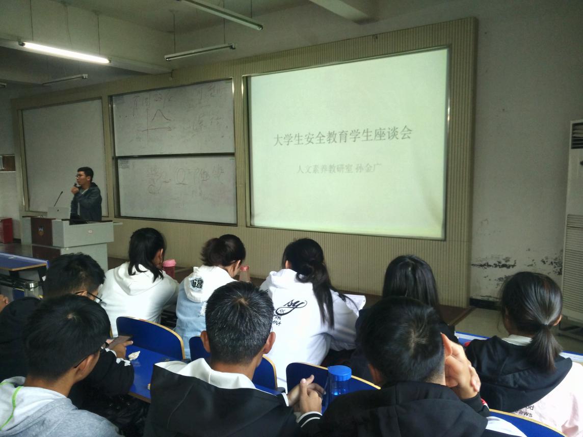10月12日,德馨书院人文素养教研室在谨学楼A101召开《大学生安全教育》课程学生座谈会,任课老师孙金广以及学生代表参加了会议。