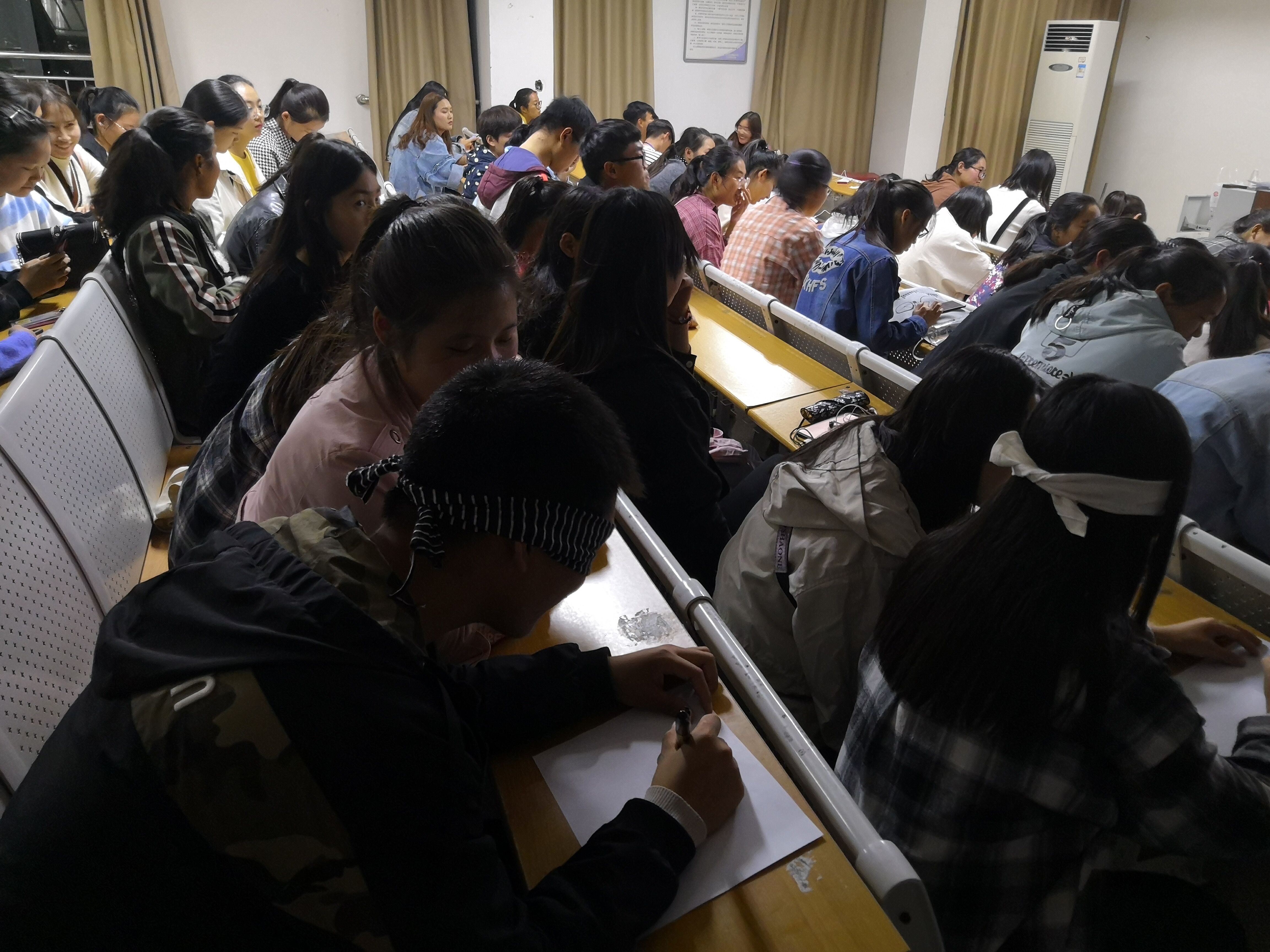 德馨书院于2018年10月12日中午在德馨书院举办“假如失明十分钟”活动。为加强学生的道德素质修养,提升学生热爱生活、热爱学习的热情,丰富学生的课余生活,使同学们亲身走进盲人世界,体会盲人生活的不易。德馨书院于10月12日中午在德馨书院举办“假如失明十分钟”活动。德馨书院17级、18级的学生积极参加了本次活动。