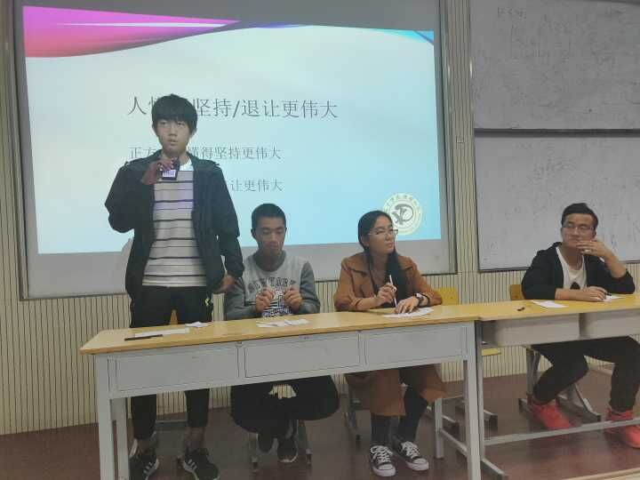这次辩论赛海选是为以后的几场比赛挑选种子选手,参与的同学较多。下午5点30分参赛选手签到完毕后辩论赛海选就正式开始。由优秀老辩手组成的评委团早已就位,主持人宣读此次辩论赛海选目的和规则。参赛选手每十个人为一组,单号为正方,双号为反方,随机选取大屏幕上的一个题目,然后正反方选手依次陈述观点,评委们依据选手个人表现打分,最后挑选出优秀的选手。
