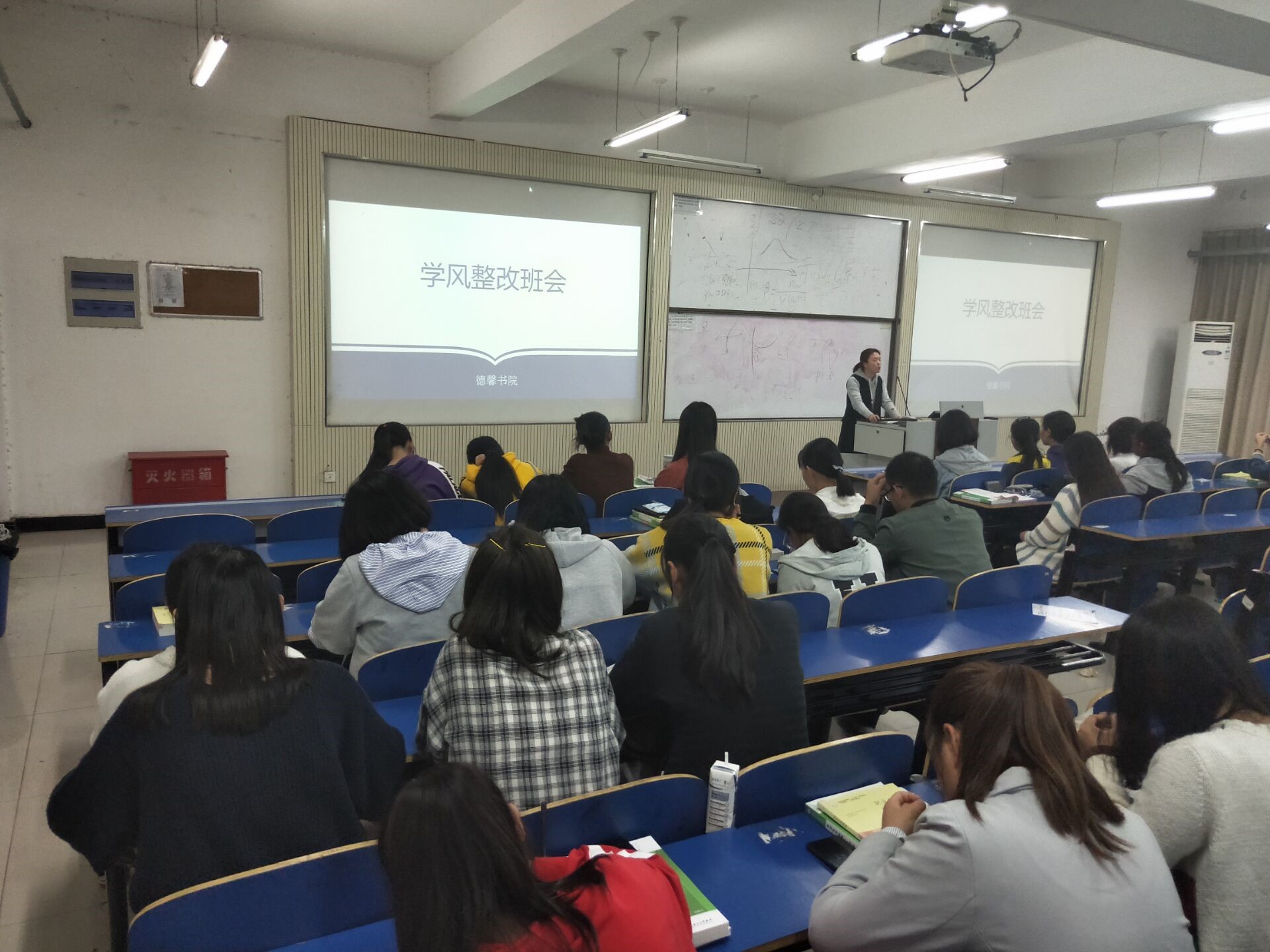 2018年10月16日,辅导员王玮老师带领所带班级学生展开了如火如荼的班级学风整改活动。旨在集中整顿学风中存在的学习自律性不足等问题,强化课堂纪律,浓郁学习氛围,增强学生自觉成才的意识,加强德馨书院学生的学风建设,帮助学生养成良好的学习生活习惯,创造一个具有良好学风的学习环境,展现德馨书院蓬勃生机的新面貌。