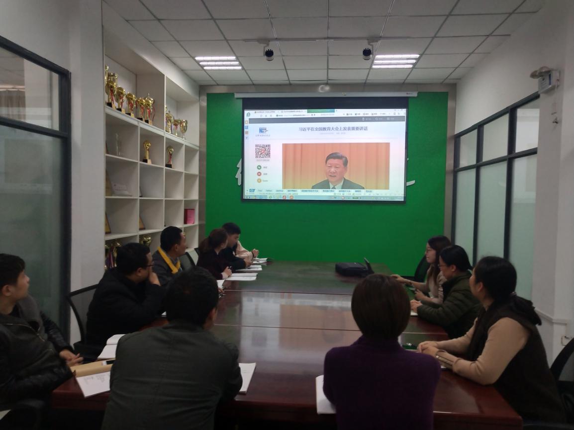 在会议中,高明同志说:“教育兴则国家兴已经成为时代强音,学有所教、人人出彩的神州画卷正在徐徐展开,我们要紧跟习近平总书记的步伐,为教育事业做出足够的贡献。”在会议最后,金靖芝书记对此次政治理论学习作了总结,并告诫大家一定要不断学习,加强自身对党的热情,用党的理论知识武装自己,与党的思想保持高度一致。要高举中国特色社会主义伟大旗帜,为中国的教育事业贡献自己的力量。