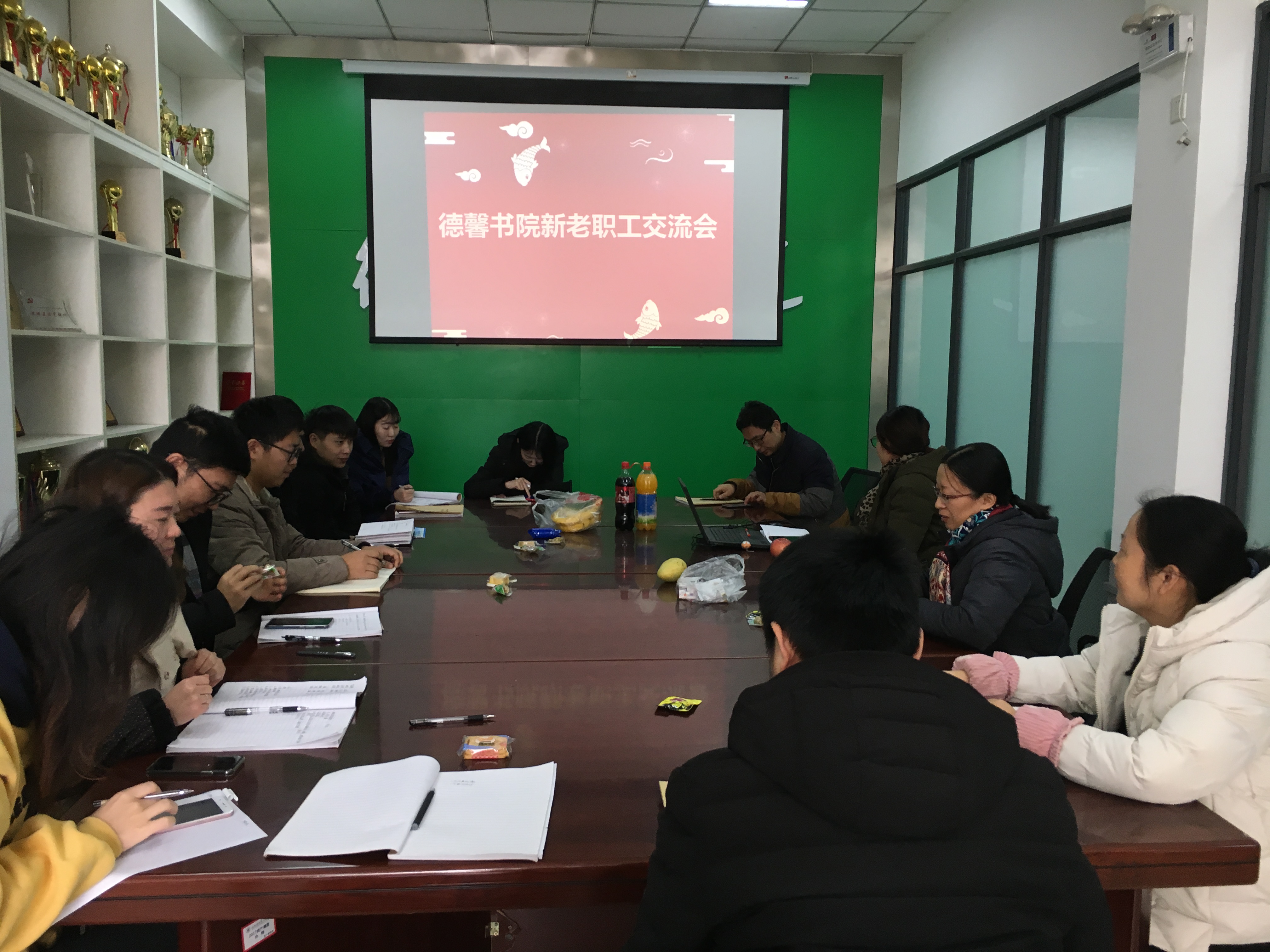为了让新员工能够更好更快的融入德馨书院大家庭,同时也为了让新职工对新的工作、生活、环境更好的认识。12月7日,德馨书院在书院会议室召开新老职工经验交流会。德馨书院工会主席平丹丹主持会议,德馨书院党总支书记金靖芝及书院全体教职工参与会议。