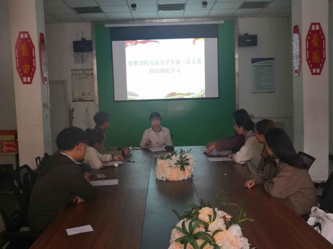 3月22日,德馨书院第二党支部在德馨书院会议室召开了政治理论学习会议,第二党支部全体同志参加,会议由侯吉昀同志主持召开。