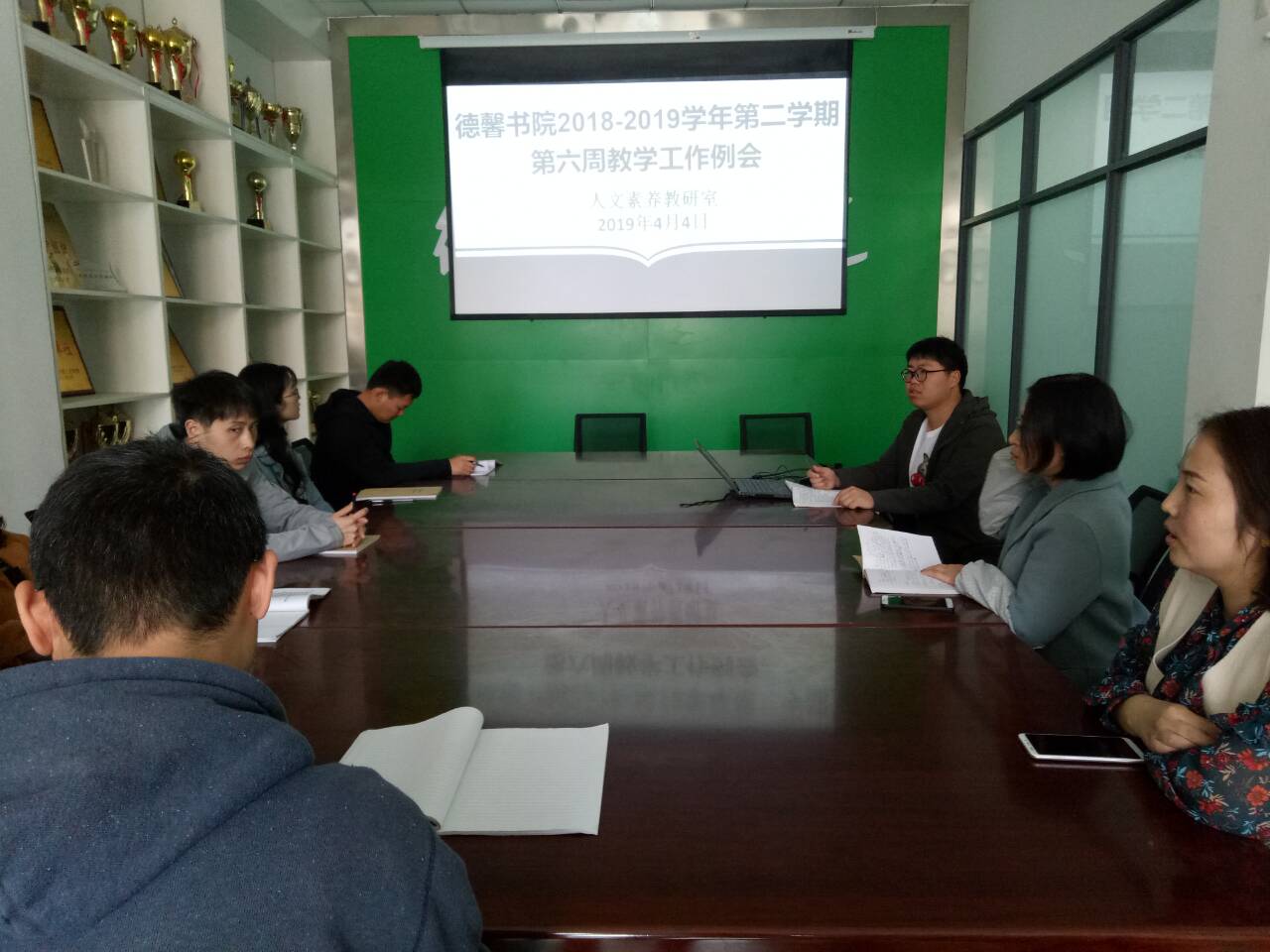 4月4日,德馨书院全体教师在书院办公室召开人文素养教研室本学期第六周教学工作例会。