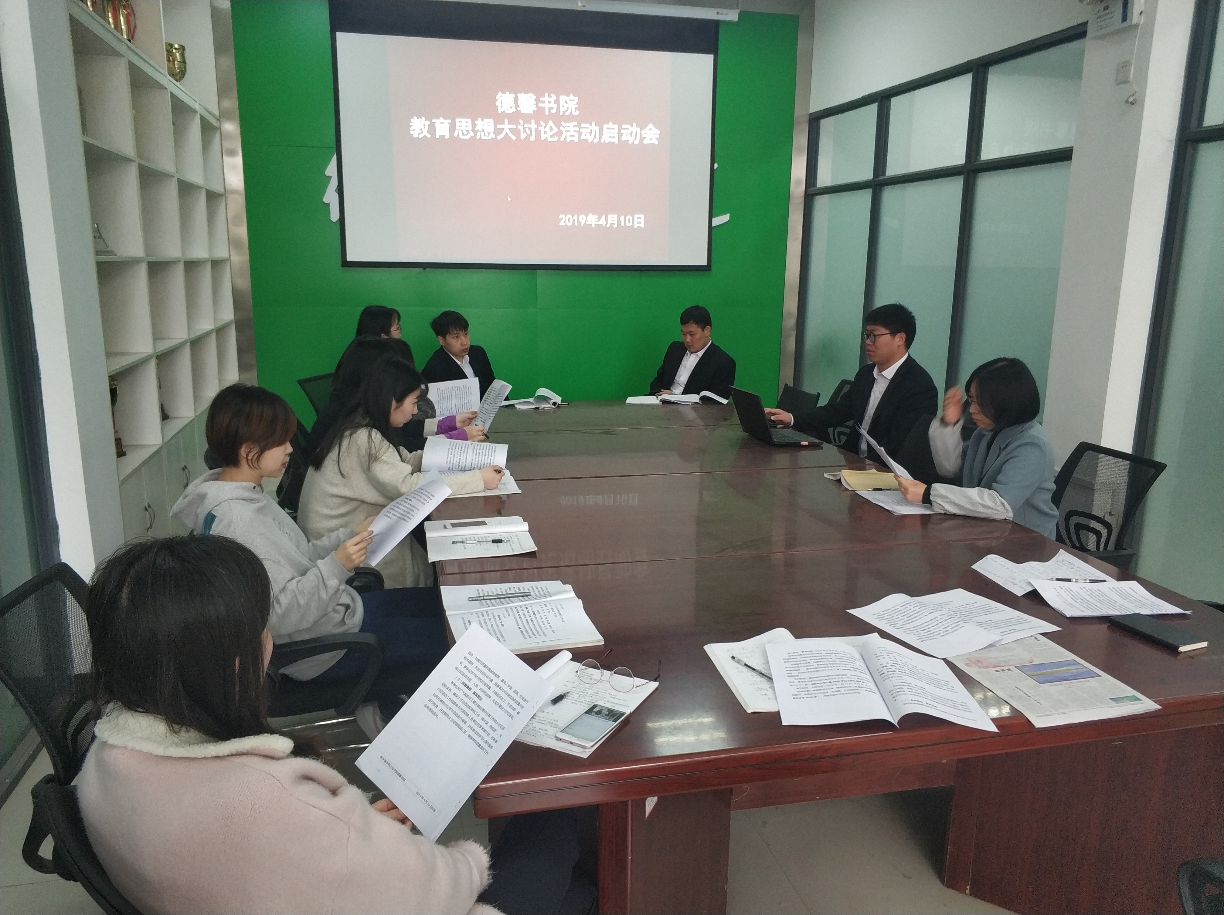 4月10日下午,德馨书院全体教师在办公室召开教育思想大讨论启动会。会上,德馨书院全体教师就学校下发的教育思想大讨论活动实施方案进行讨论,共同商议制定德馨书院的实施方案,并对有关工作内容进行具体分工。