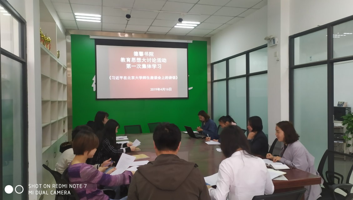 2019年4月16日上午,德馨书院组织全体教师开展教育思想大讨论第一次集体学习活动。