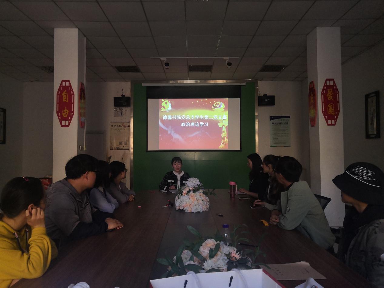 4月22日德馨书院第二党支部在德馨书院会议室召开了政治理论学习会议,第二党支部全体同志参加会议,由侯吉昀同志主持召开。