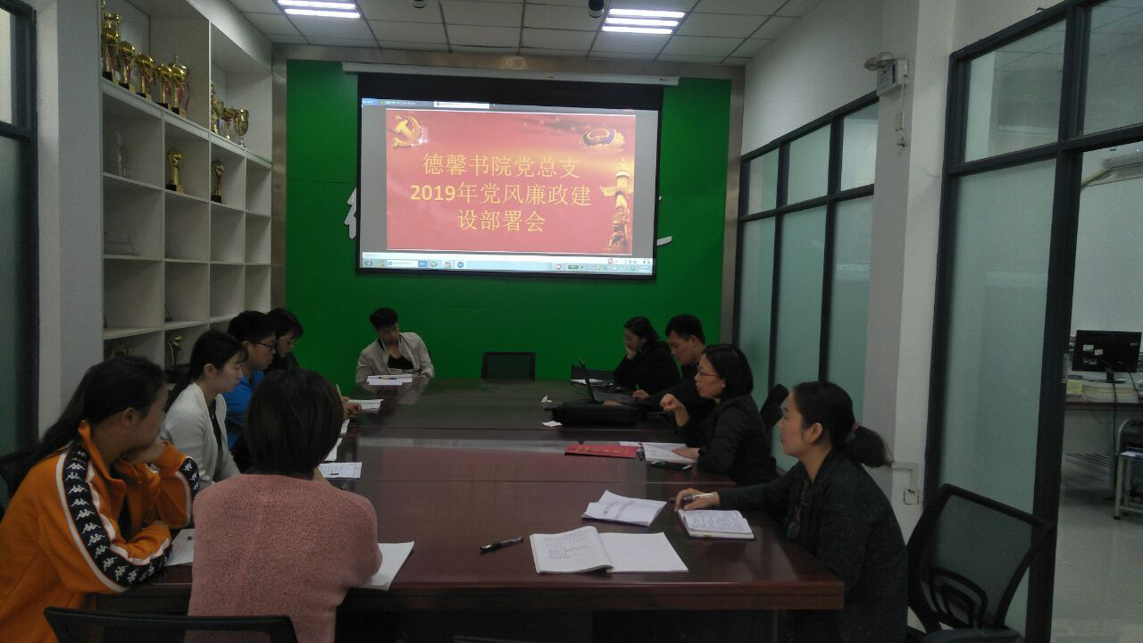 为严格执行党风廉政建设责任制,3月29日,德馨书院党总支在会议室召开了2019年度党风廉政部署会。会议由德馨书院党总支书记金靖芝主持,德馨书院全体教职工参加。