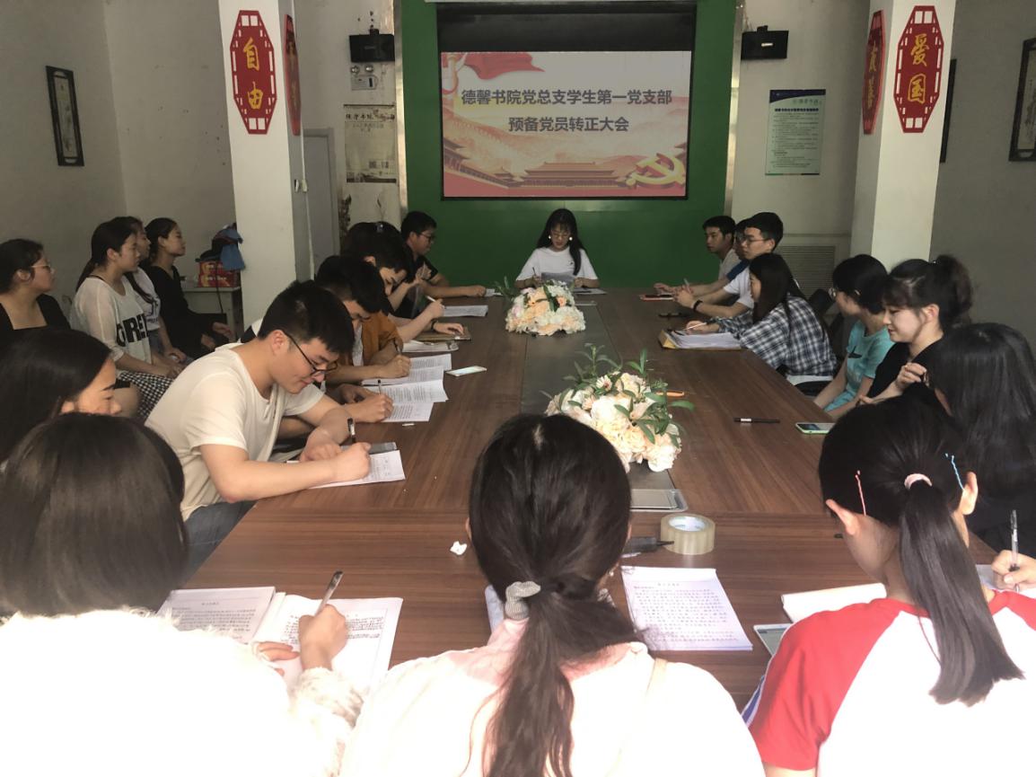 德馨书院党总支学生第一党支部预备党员转正大会严格按照党员转正的有关规定流程进行并取得圆满结束。