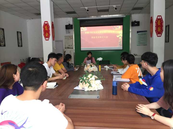 首先,组织委员王俊鹏清点人数,有表决权的正式党员实到会人数超过应到会人数的三分之二,张晗同志宣布预备党员转正大会正式开始,全体起立,唱国歌。