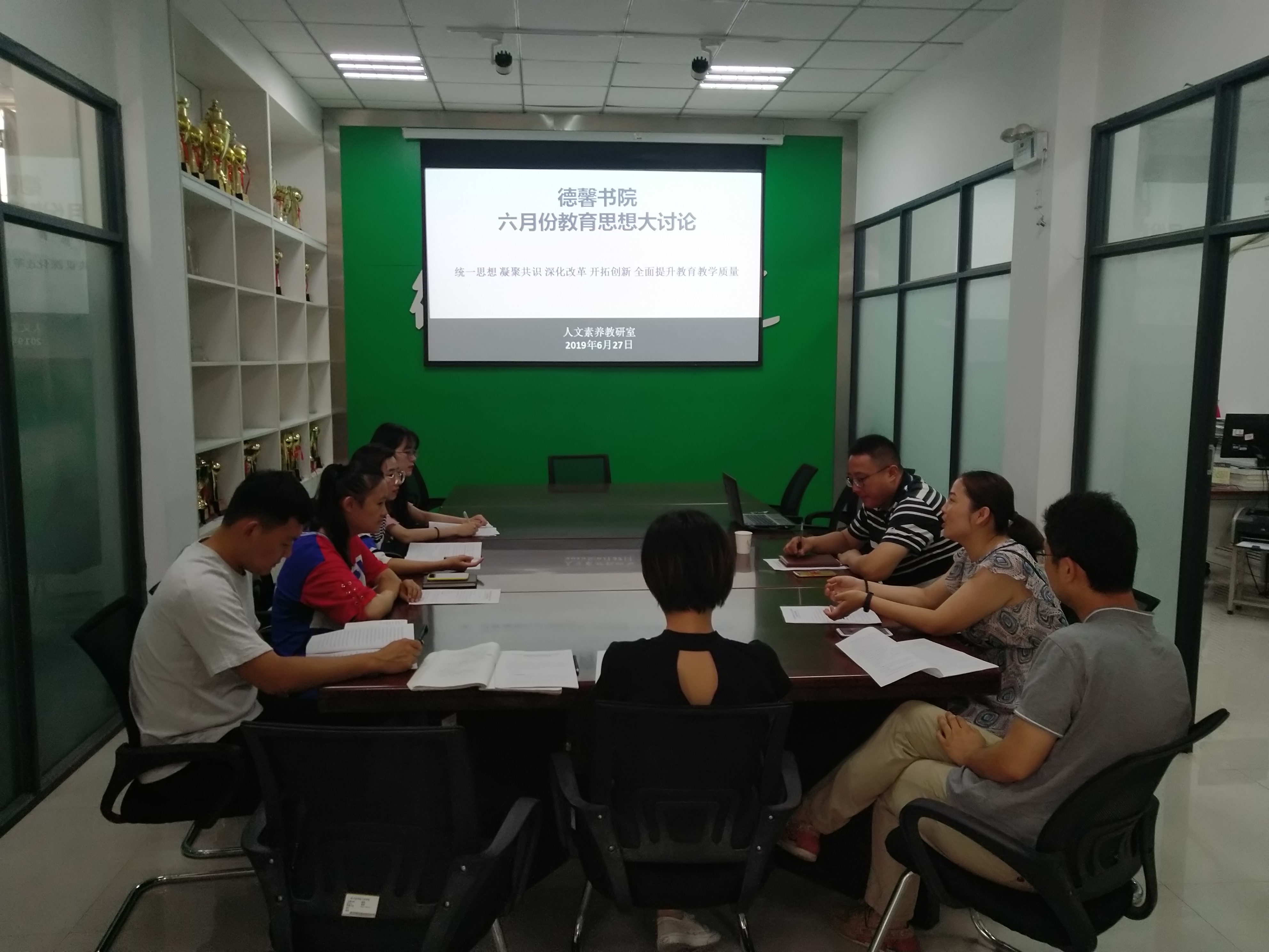 根据学校教育思想大讨论统一部署以及书院教育思想大讨论活动实施方案安排,6月27日上午,德馨书院党总支在书院会议室召开了6月份第二次教育教学思想大讨论会议。本次教育思想大讨论活动,德馨书院邀请王炜烨教授参与德馨书院主题为《统一思想 凝聚共识 深化改革 开拓创新 全面提升教育教学质量》的讨论会。德馨书院人文素养教研室的教师参与了本次讲座。