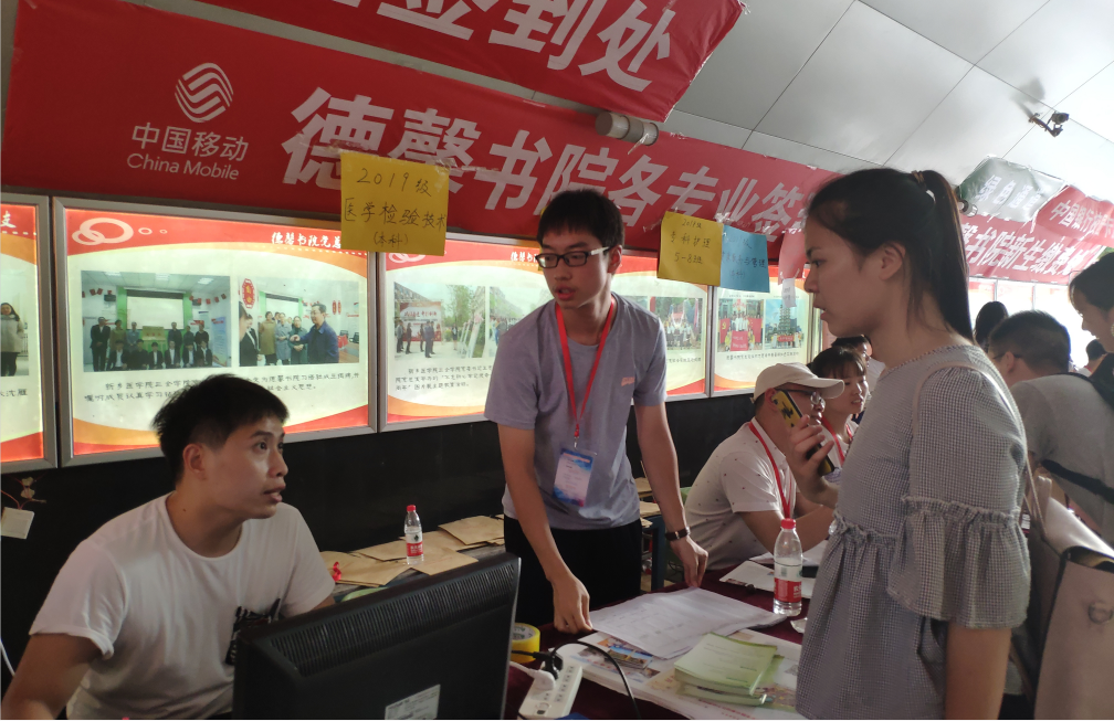 今年大部分新生是在家人的陪同、同学间有组织性的来学校报到,而有另外一部分新生则只身前往学校报到。在两种截然不同的情况下,只身前往学校报到的新生则多因为父母工作原因无法抽身前来。一些独自前来的新生,可以借助这一次的远行证明自己逐渐变得成熟,可以独立在异乡完成学业,德馨书院的志愿者们也积极细心引导新生完成报道流程,带领新生办理住宿等,烈日下,看到的是满头大汗却笑容灿烂的迎新工作者们,是高温下仍坚持工作的老师和同学。有一些新生自发加入迎新志愿者的队伍,德馨书院对这些热情的新生们表示诚挚的感谢。