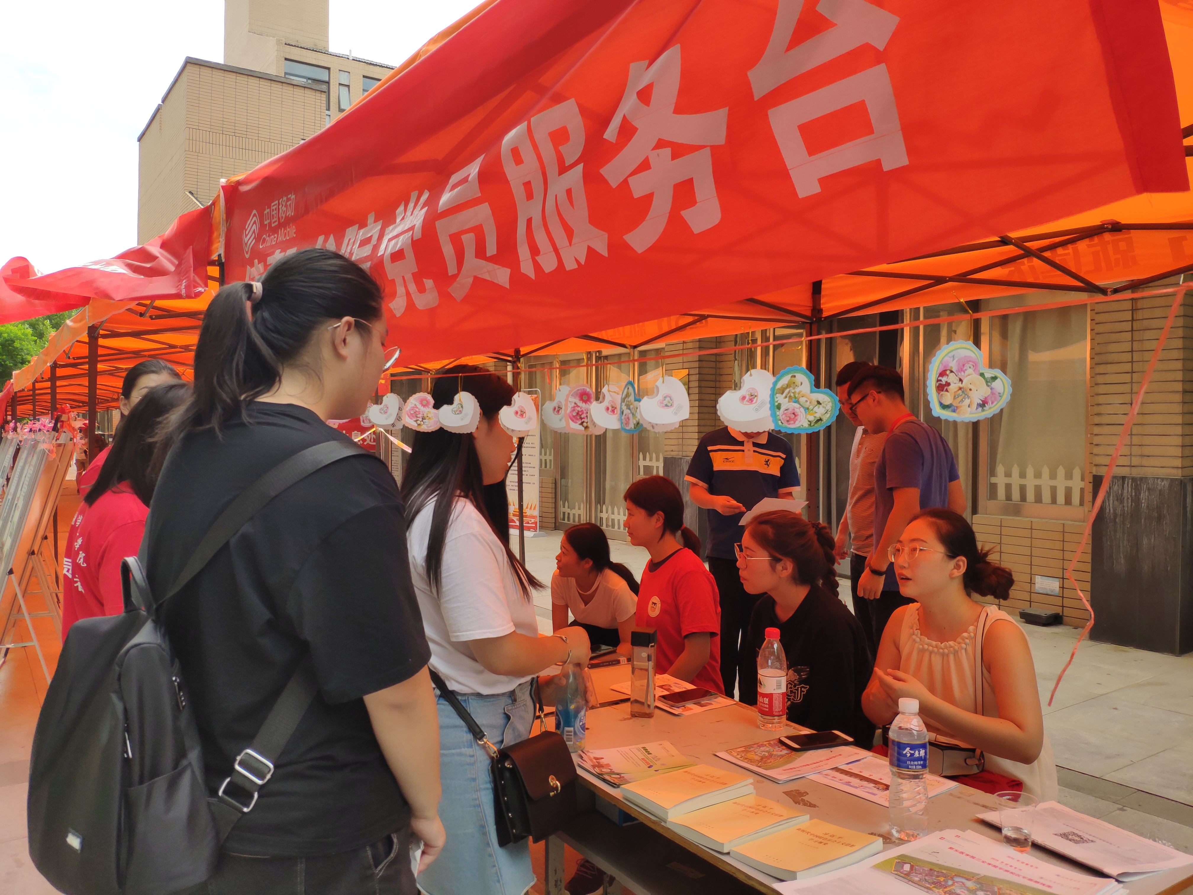 在迎新现场,工作人员细心引导新生完成报到流程,带新生前往宿舍,介绍德馨书院的基本情况和一些大学的生活经验。烈日下,看到的是满头大汗却笑容灿烂的迎新工作者们,是高温下仍坚持工作的老师和同学。有一些新生自发加入迎新志愿者的队伍,德馨书院对这些热情的新生们表示诚挚的感谢。在会场的家长休息区,我们放置了新生报道流程及新生入学安全须知的展板,让每位同学每位家长可以及时了解到报道流程,同时可以提高安全防范意识,避免财务损失。